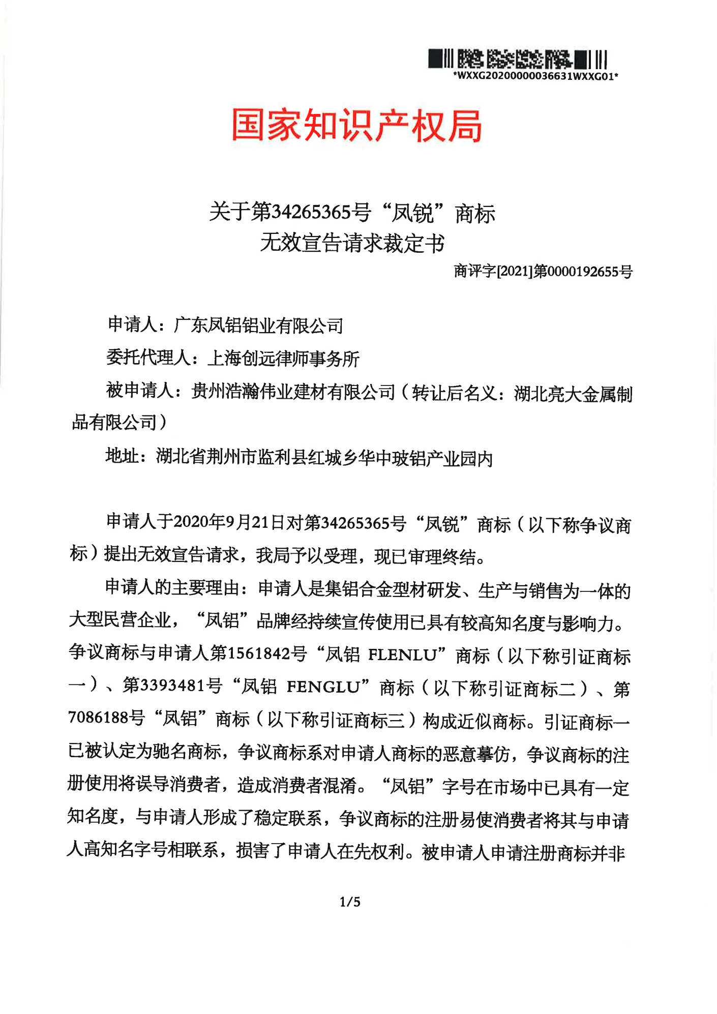 茂名辉知队 | 国家知识产权局:“凤锐”商标无效